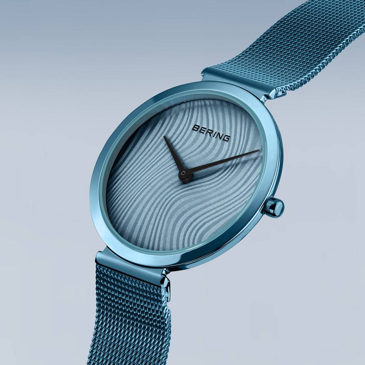 Dit dameshorloge is van het merk Bering. Het is een horloge gemaakt van edelstaal. De diameter van de kast is32 mm en de kast is 5 mm dik.