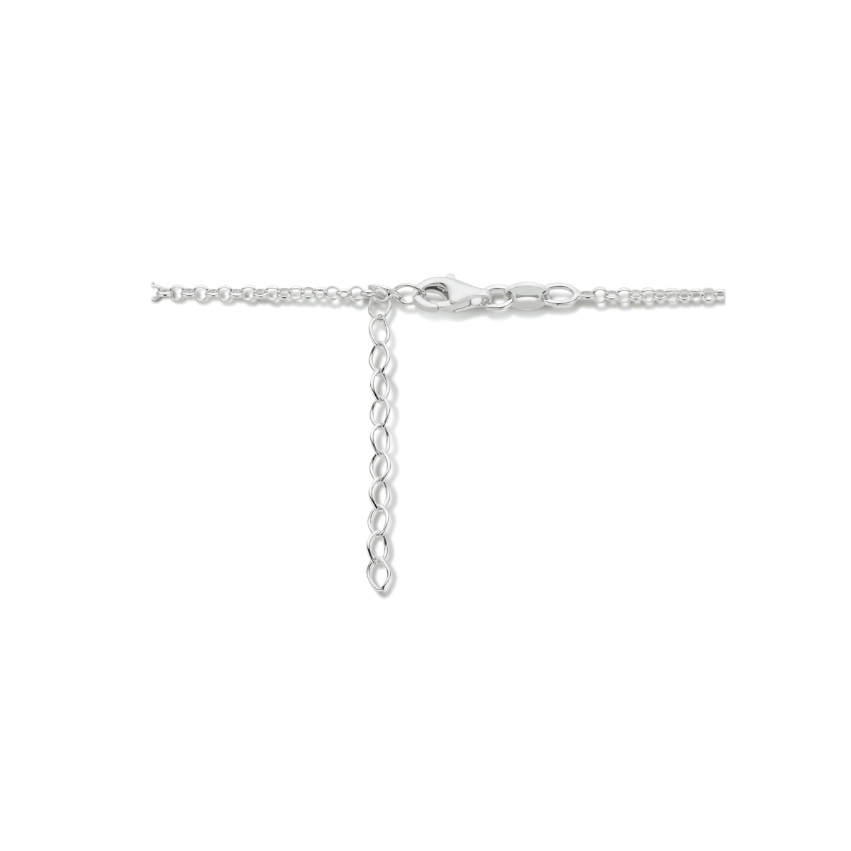 Gerhodineerd 925 zilveren schakelcollier uitgevoerd met een karabijn sluiting. Het collier heeft een draaglengte van 40cm en een extensie van 4cm.