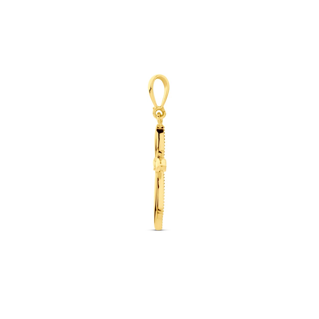 14k Geelgouden hanger met kruis en zirkonia. Het kruis heeft een afmeting van 15.5x12mm.