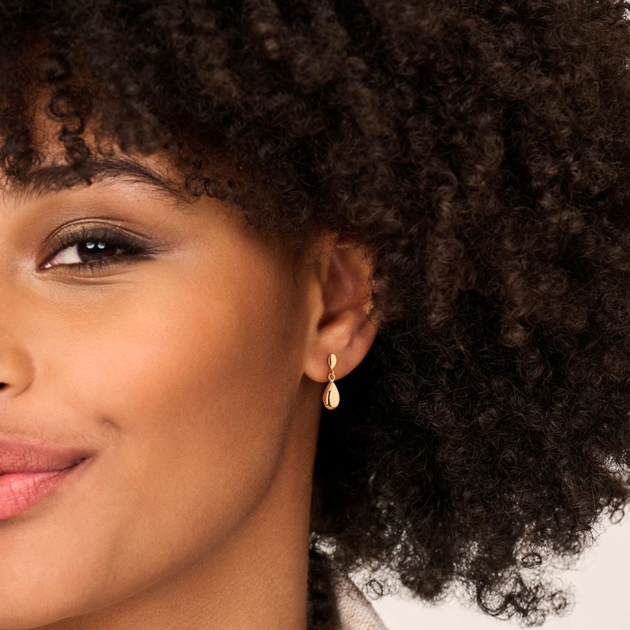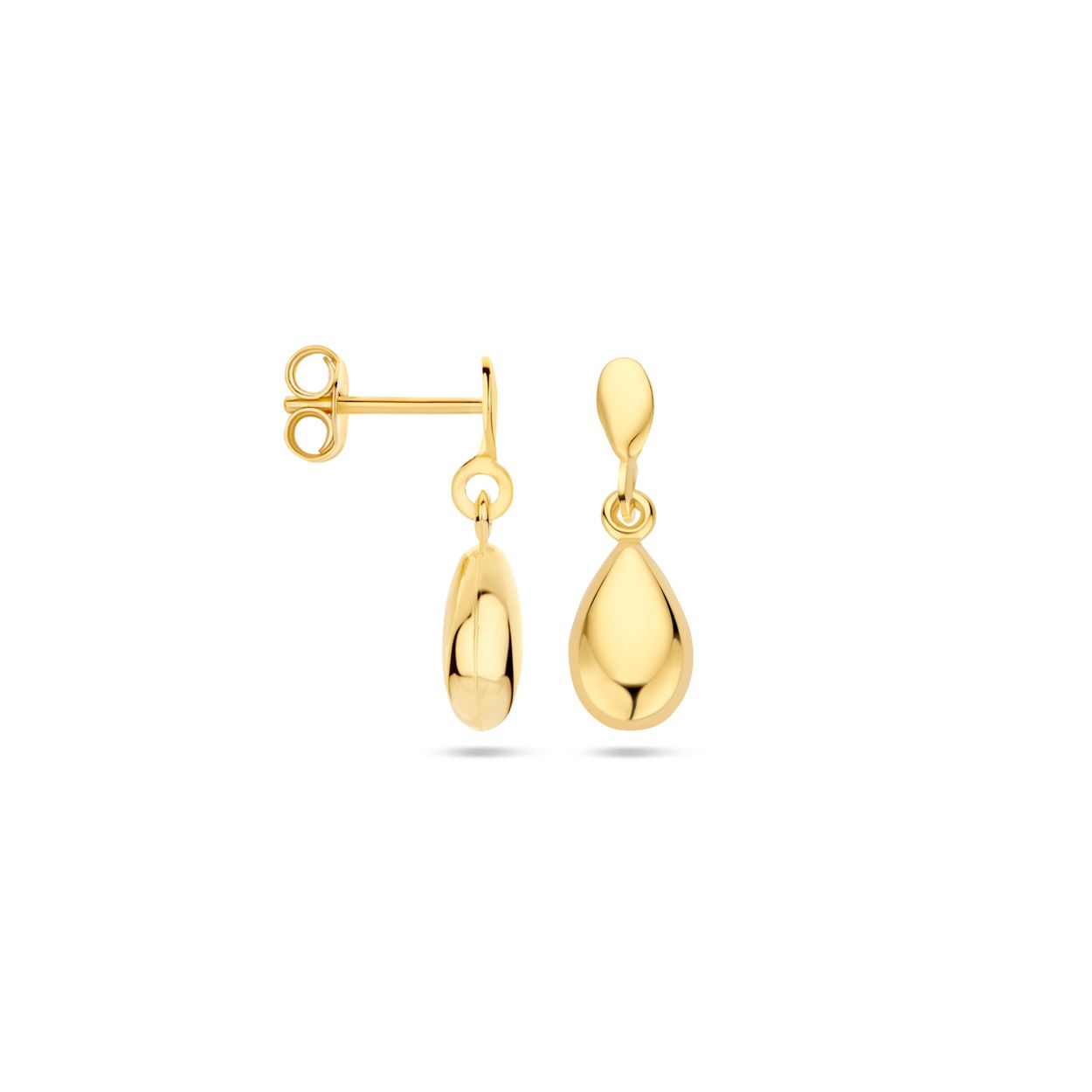 14k Geelgouden oorhangers uitgevoerd met een druppel. De oorhangers hebben een totale hoogte van 18mm.