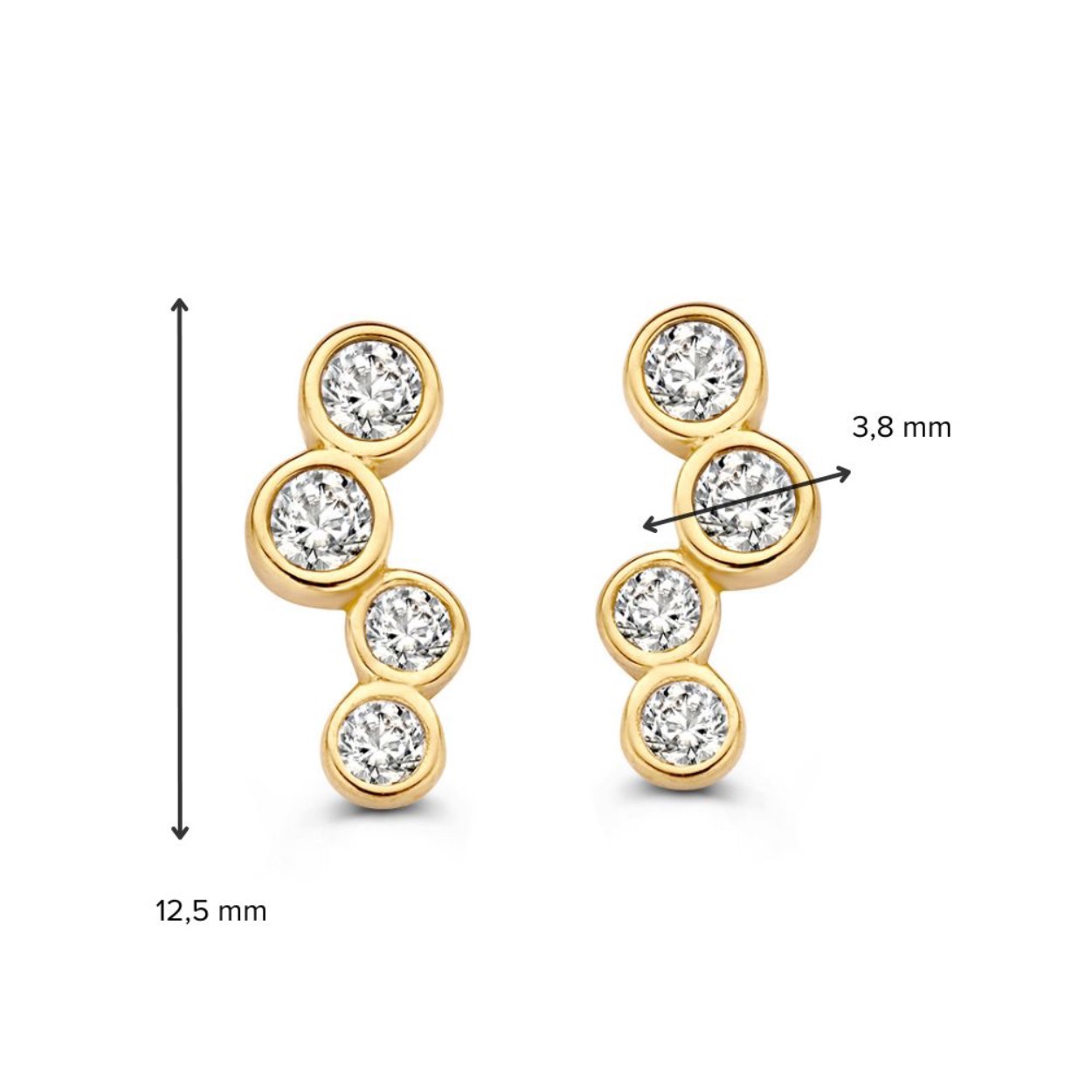 Geelgouden oorstekers met zirkonia.