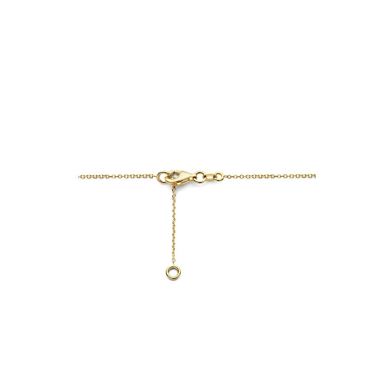 14k Geelgouden collier uitgevoerd met bolletjes van 3mm en een zoetwaterparel van 6mm. Het collier heeft een draaglengte van 42cm met een extensie van 3cm en een stevige karabijn sluiting.
