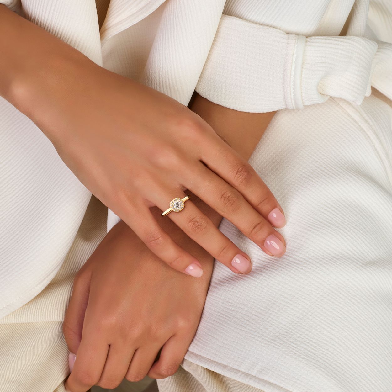 14k Geelgouden ring uitgevoerd met zirkonia. De ring heeft een diameter van 7mm.