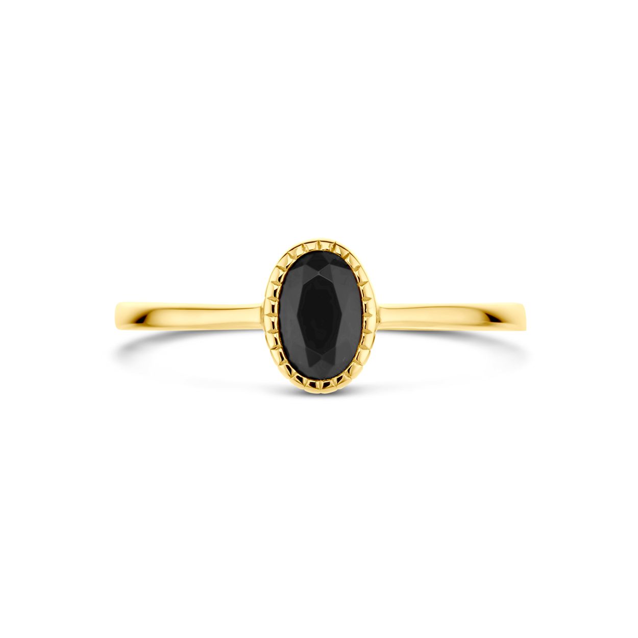 14k Geelgouden ring uitgevoerd met zwart zirkonia. De ring heeft een afmeting van 7x6mm.