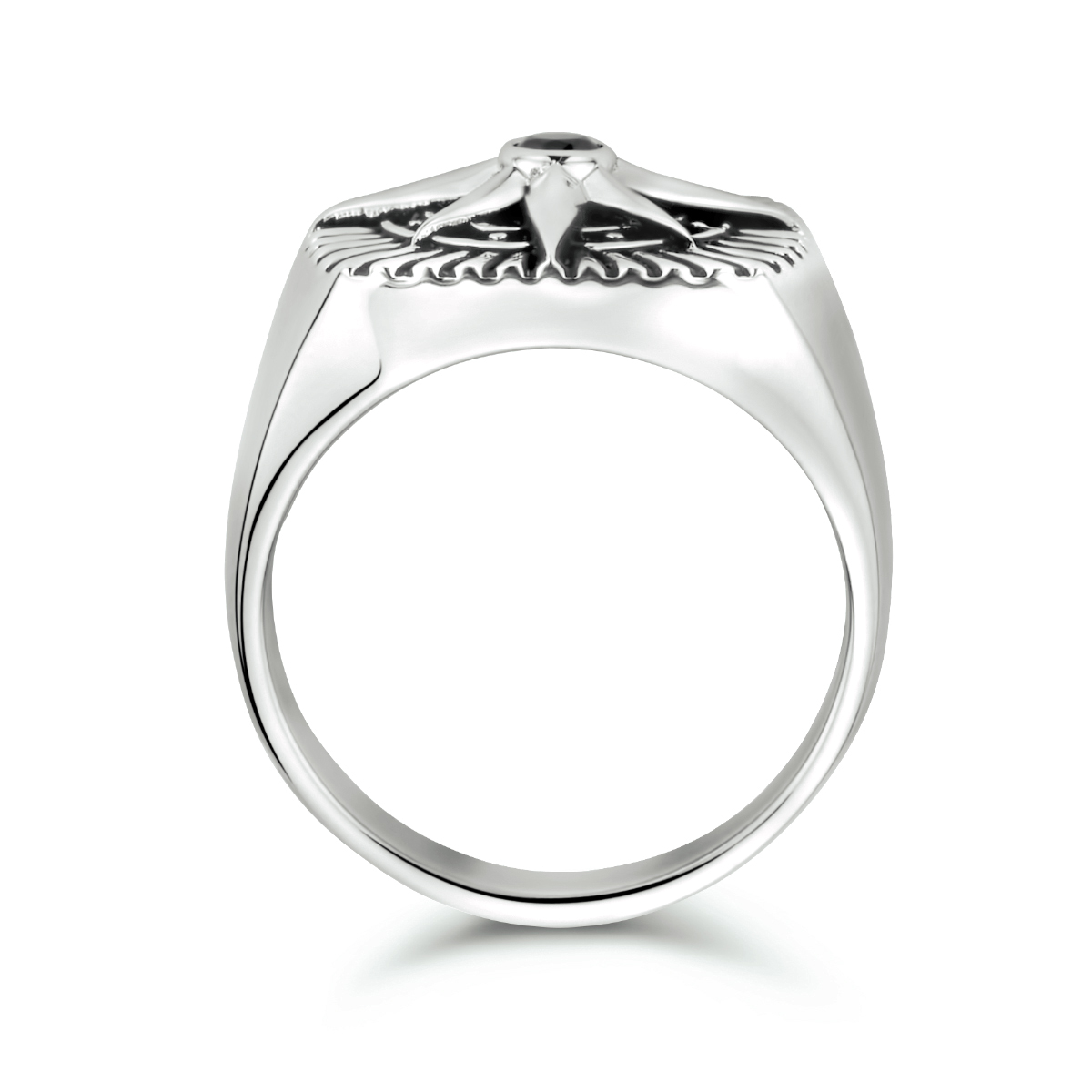 Gerhodineerd 925 zilveren zegelring uitgevoerd met een ster en een schitterende zwart zirkonia. De ring heeft een breedte van 16.5mm.